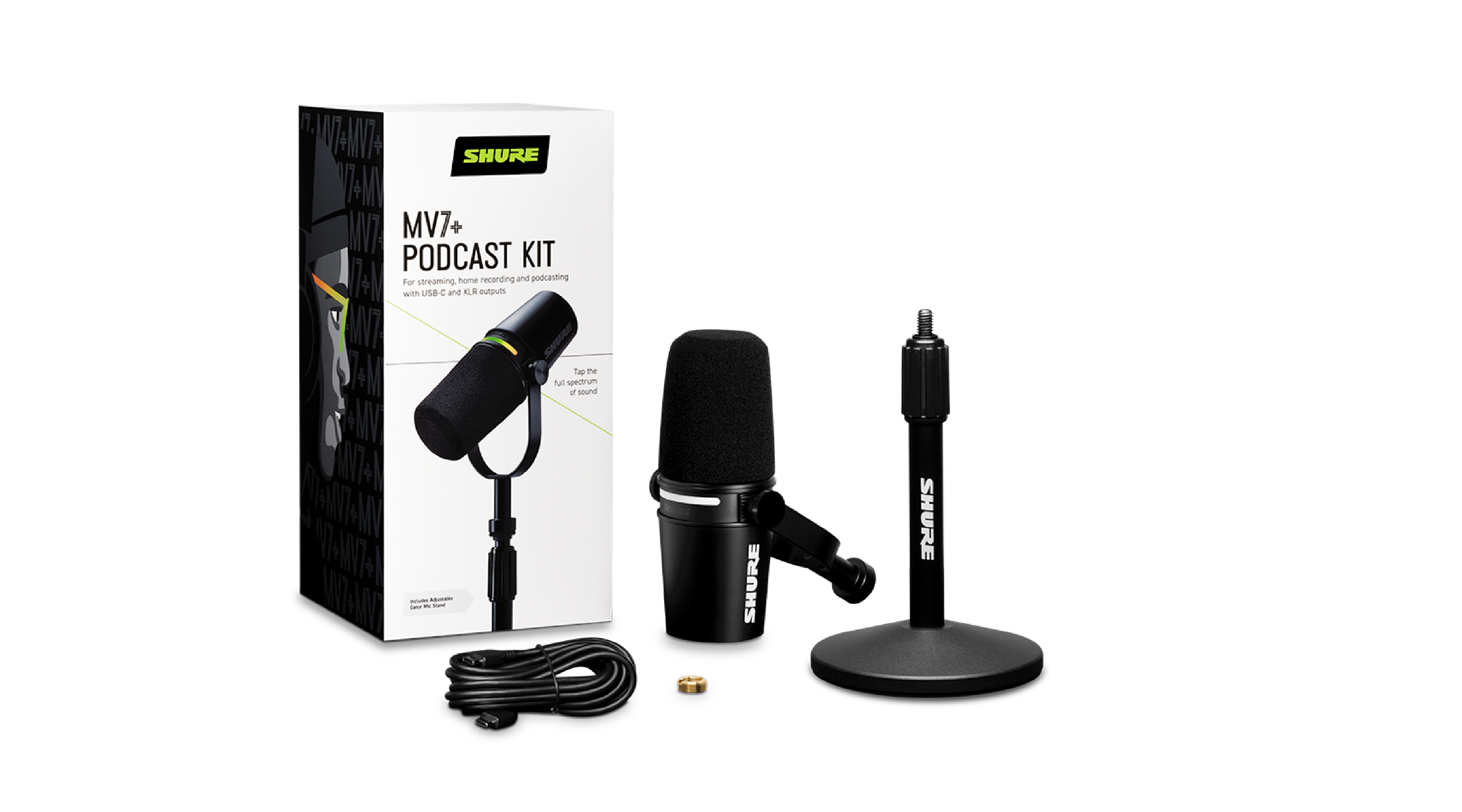 Bên trong hộp | (1) MV7+; (1) Cáp 3m USB-C to USB-C; (1) sách HDSD |