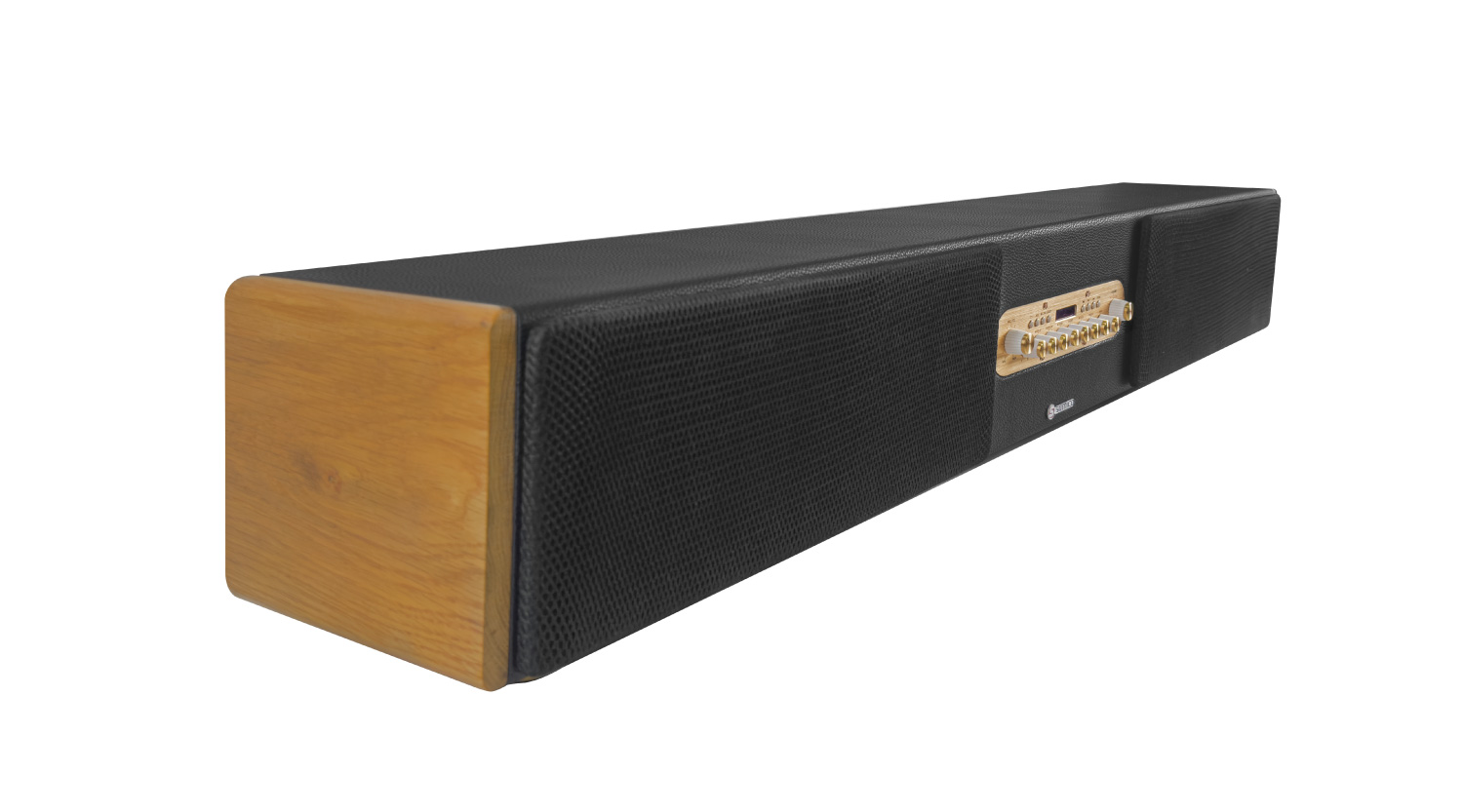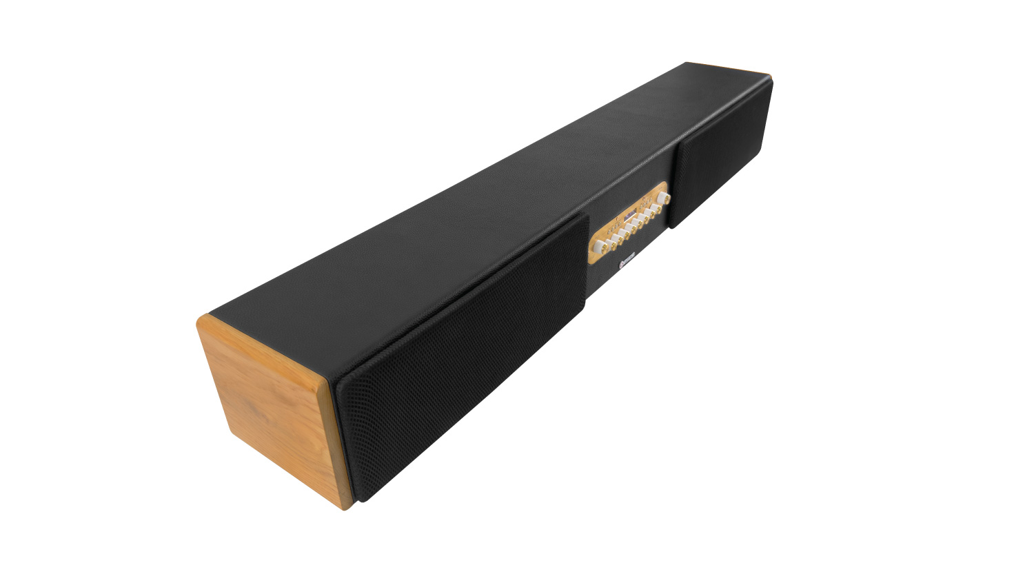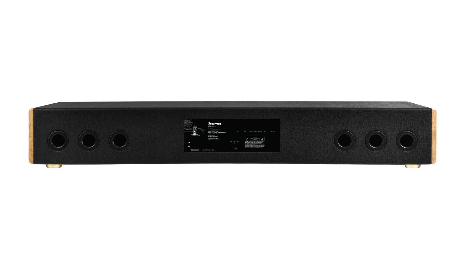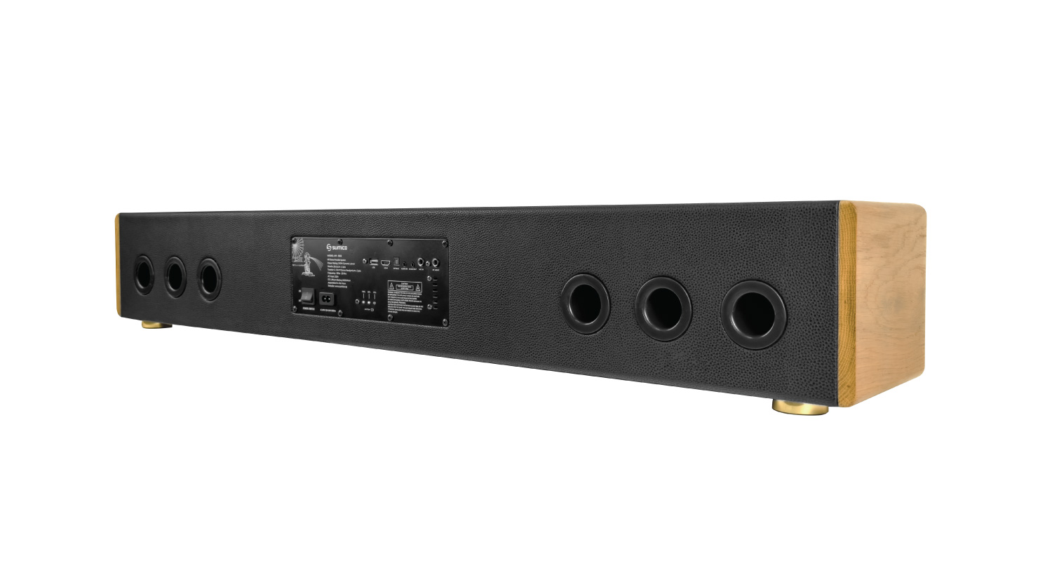 Soundbar Sumico HS54 sở hữu thiết kế thanh gọn, sang trọng phù hợp với nhiều không gian từ phòng khách, phòng ngủ đến căn hộ studio. 4 mặt được bọc da đen sần cao cấp sang trọng, 2 mặt cạnh bên ốp gỗ màu Cherry tạo điểm nhấn thẩm mỹ, bảng điều khiển thân thiện dùng nút xoay vặn dễ dàng hiệu chỉnh hoặc cầm Remote điều khiển từ xa tiện lợi.