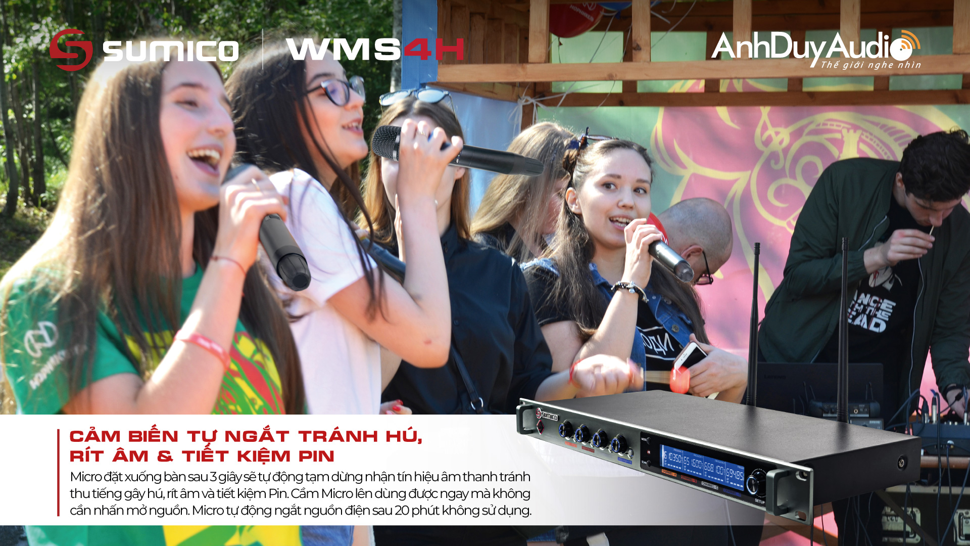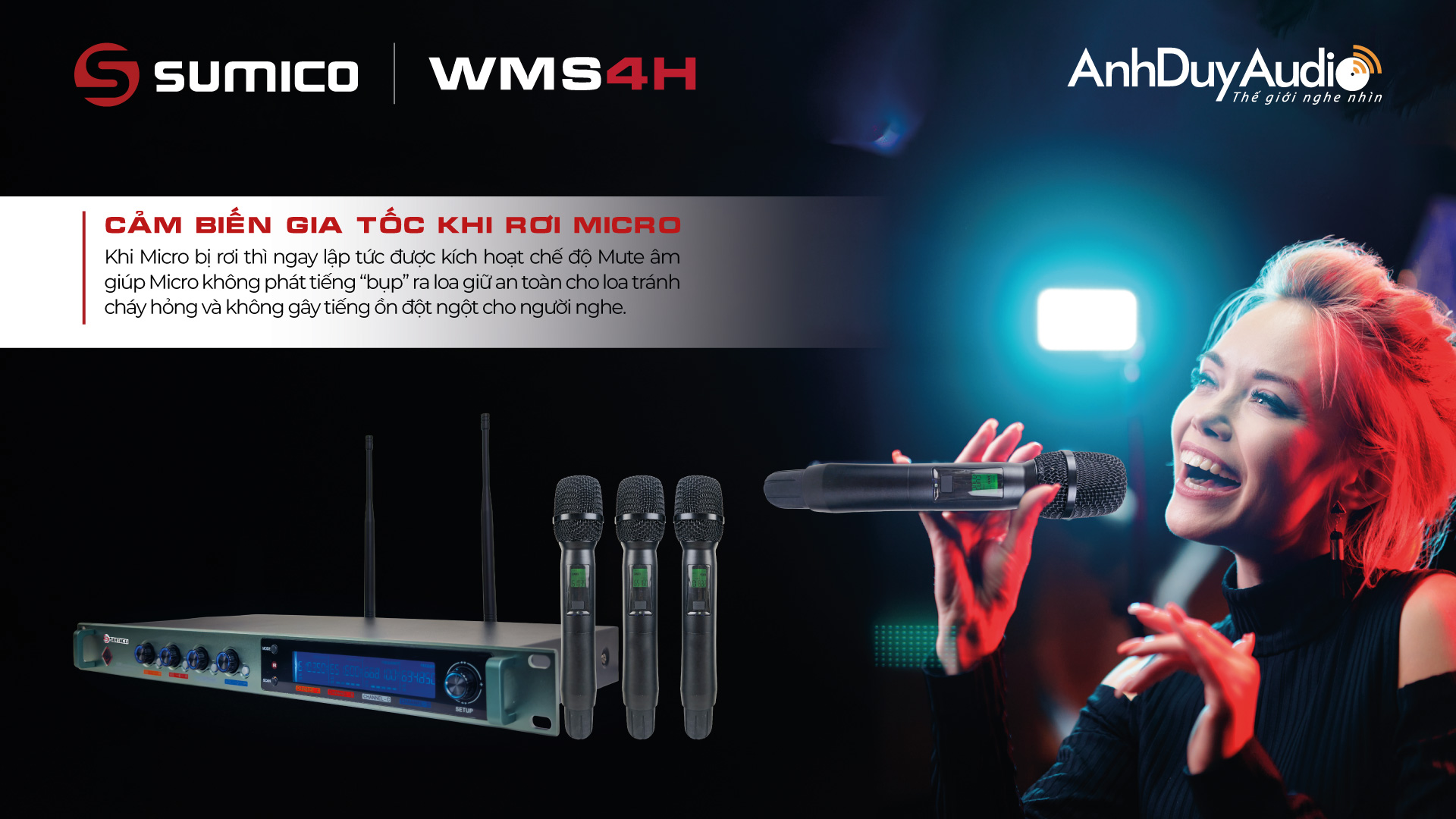 Sumico WMS4H nhạy tiếng hút âm rất tốt, tiếng chi tiết, rõ nét, êm trong không gây ra hiện tượng chói tai hoặc vỡ tiếng khi hát.