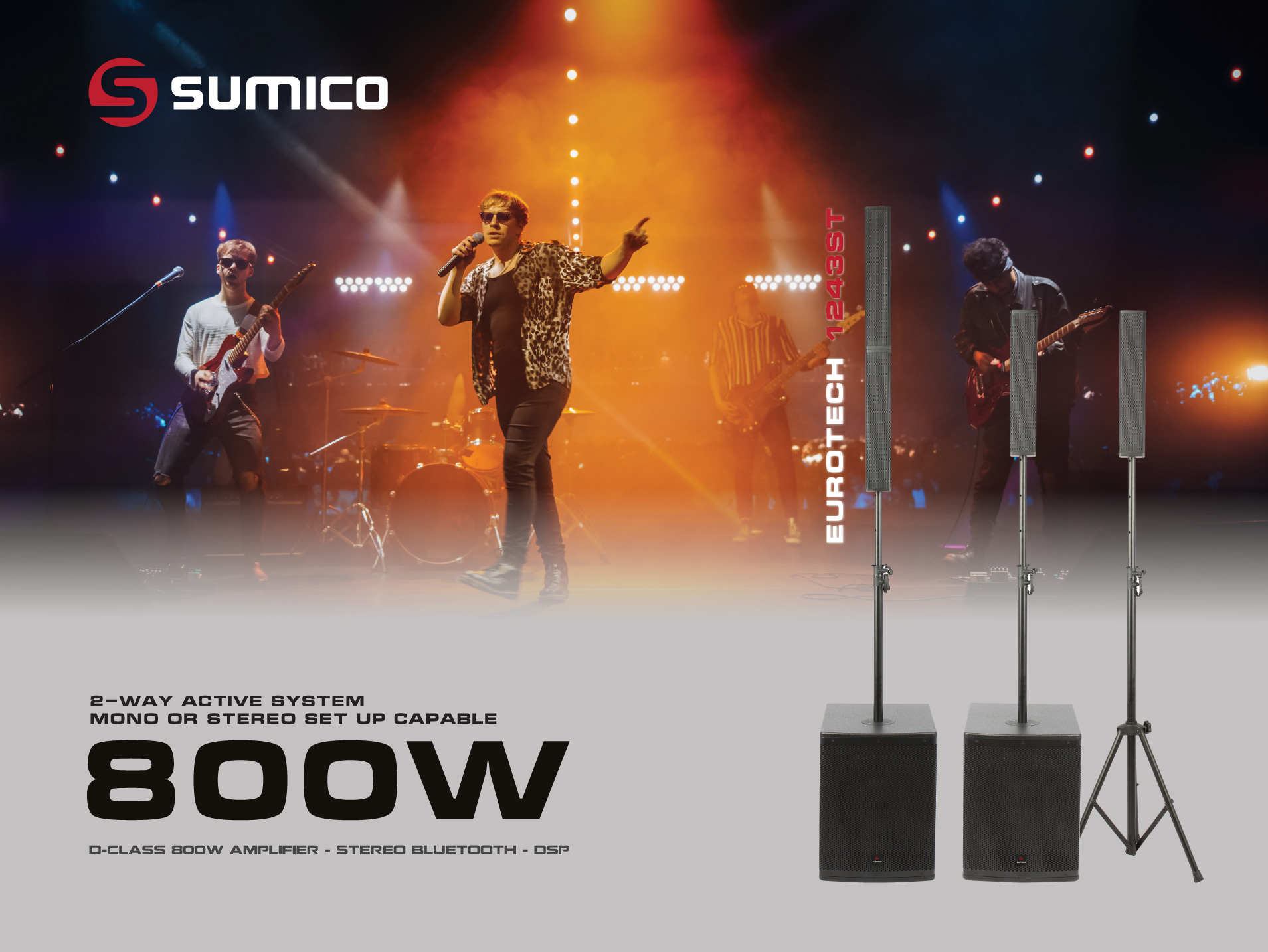 Sumico EUROTECH 1243ST tiêu biểu cho xu hướng loa cột di động thế hệ mới: mạnh mẽ – tinh gọn – thông minh. Với công suất 800W, công nghệ DSP tiến tiến tùy chỉnh EQ chính xác và Bluetooth 5.3 cùng tính năng Stereo Bluetooth, sản phẩm đáp ứng trọn vẹn nhu cầu cho biểu diễn chuyên nghiệp, hội thảo, sự kiện hoặc karaoke cao cấp. Đây là lựa chọn xứng đáng cho những ai cần một hệ thống âm thanh toàn diện – dễ sử dụng – chất lượng trình diễn cao trong một thiết kế gọn gàng, tinh tế.