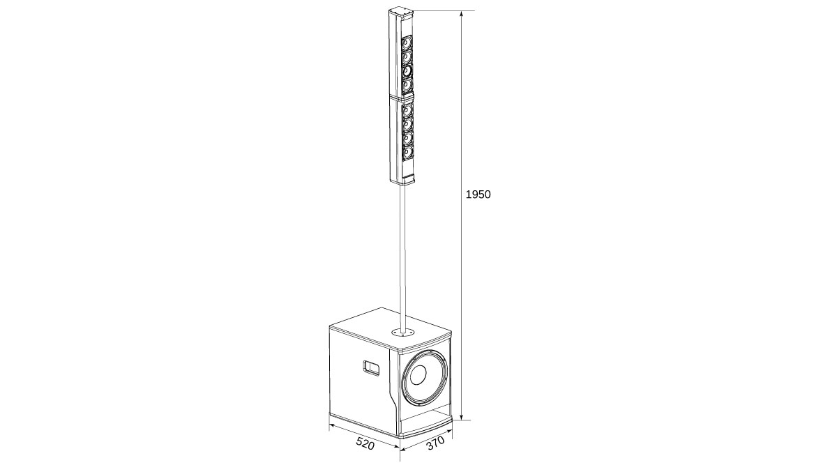 Cụm loa cột đảm nhiệm dải trung – cao rõ ràng, trong trẻo, thể hiện tốt giọng hát, nhạc cụ acoustic và cả các bản phối điện tử phức tạp. Nhờ thiết kế cấu trúc loa line-array có góc phủ âm hẹp theo chiều dọc và rộng theo chiều ngang, giúp kiểm soát âm thanh tốt hơn theo phương thẳng đứng, hạn chế tối đa hiện tượng dội âm từ trần và sàn, cho âm thanh rõ ràng hơn và lan tỏa đều trong không gian theo chiều ngang, giúp người nghe ở xa vẫn cảm nhận được sự đồng nhất về cường độ và chi tiết âm thanh.
