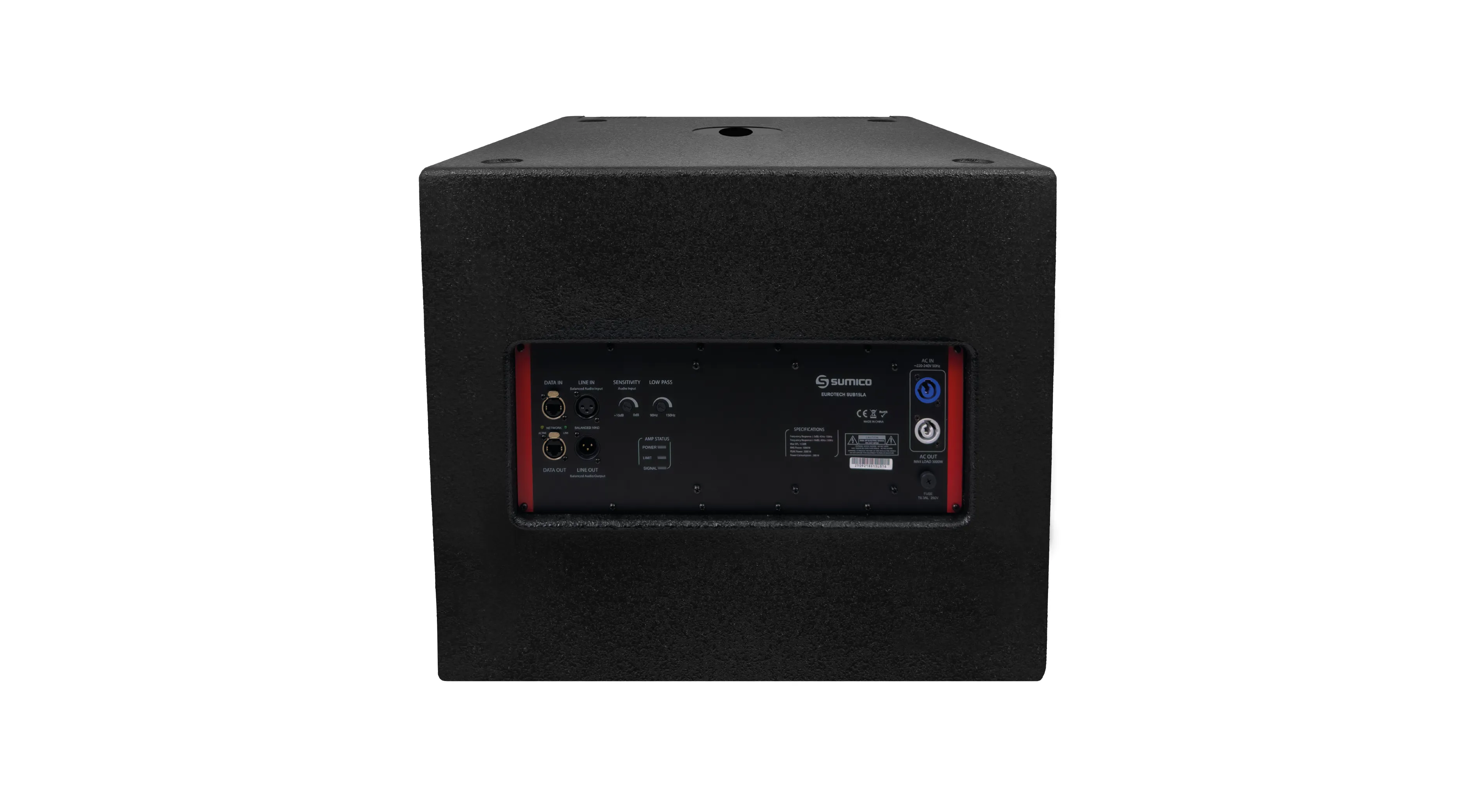 Công suất thực lên tới 1000W RMS, Sumico EUROTECH SUB15LA có năng lực của 1 subwoofer 18” chỉ với hình hài của 1 loa subwoofer 15” cho âm lượng khủng Max SPL 133 dB (Peak). Loa cho phép điều khiển từ xa qua cổng RS485 kết nối mạng, có thể setup bằng phần mềm hoặc bằng tay theo các chế độ Preset trên loa.