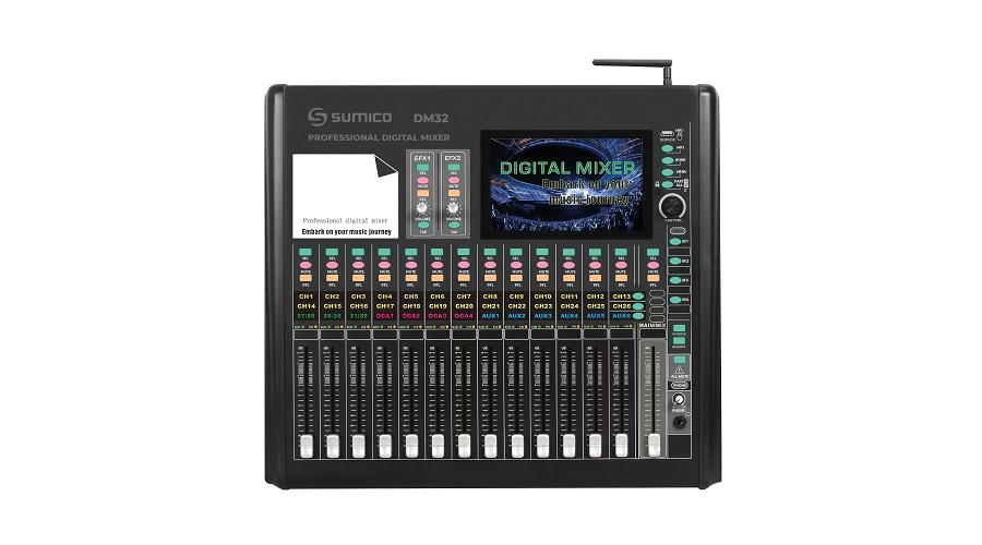 Mixer Digital Sumico DM32 gây ấn tượng với thiết kế hiện đại và thân thiện người dùng. Mặc dù là Mixer kỹ thuật số nhưng Sumico DM32 vẫn được thiết kế cần gạt fader và các nút hiệu chỉnh như Mixer Analog truyền thống dễ dàng thao tác kết hợp linh hoạt. Điểm nổi bật ở mẫu Mixer Digital Sumico DM32 là màn hình cảm ứng màu 7 inch cho phép người dùng kiểm soát toàn bộ hệ thống chỉ bằng thao tác chạm điều chỉnh EQ, compressor, reverb, delay và các hiệu ứng trực tiếp trên mixer mà không cần thêm thiết bị ngoài. Giao diện số được thiết kế khoa học và tối giản, dễ tiếp cận ngay cả với người dùng không chuyên sâu về âm thanh.