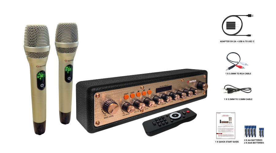 - Tích hợp 2 Micro không dây cao cấp chất lượng cao công nghệ hiện đại giúp dễ dàng tinh chỉnh cho tiếng hát dày khỏe, trong trẻo và chống hú, rít tốt hơn.